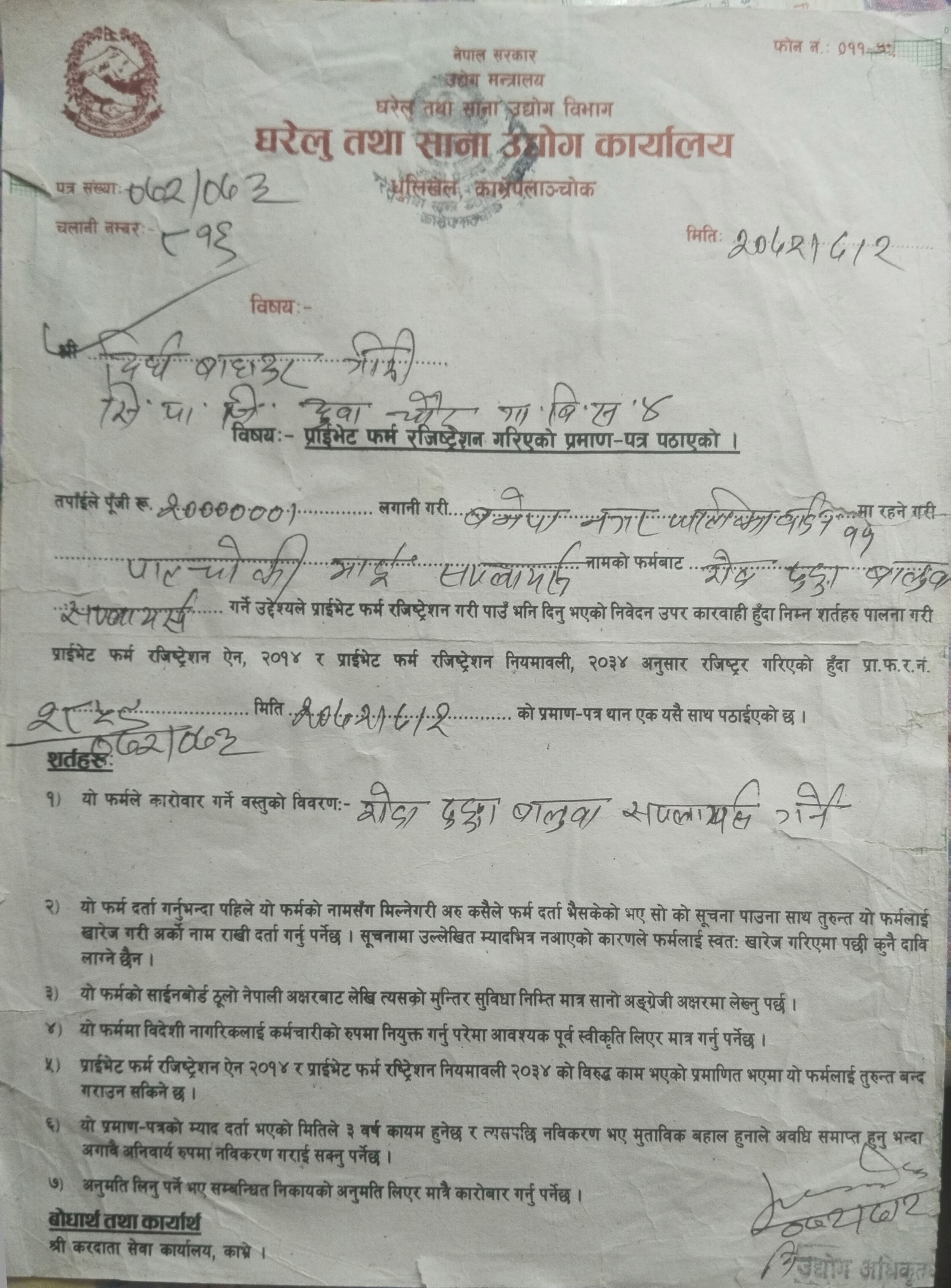 Shree Palchoki Mai Suppliers was established in year 2072 B.S, as a general supply oriented company. Proactive and timely customer services is the backbone of
